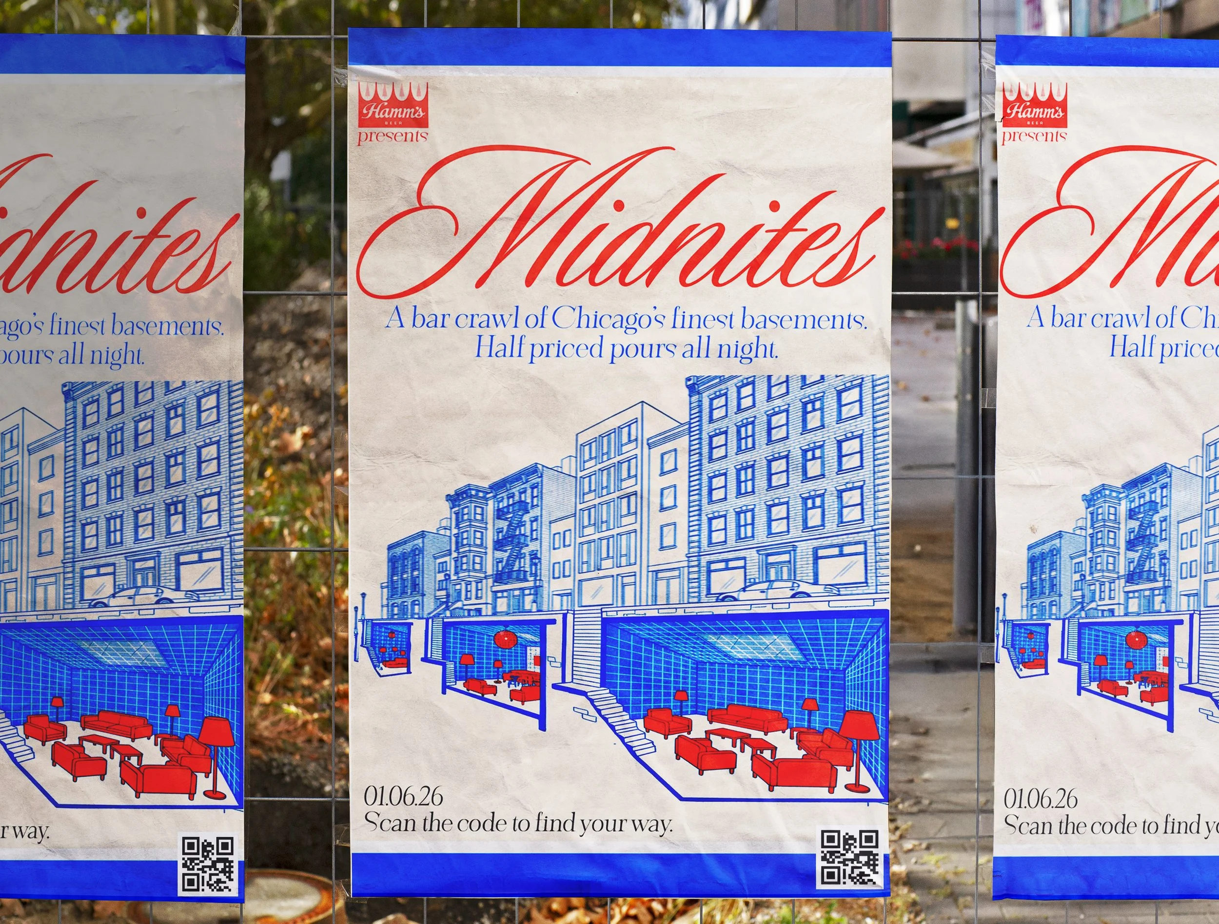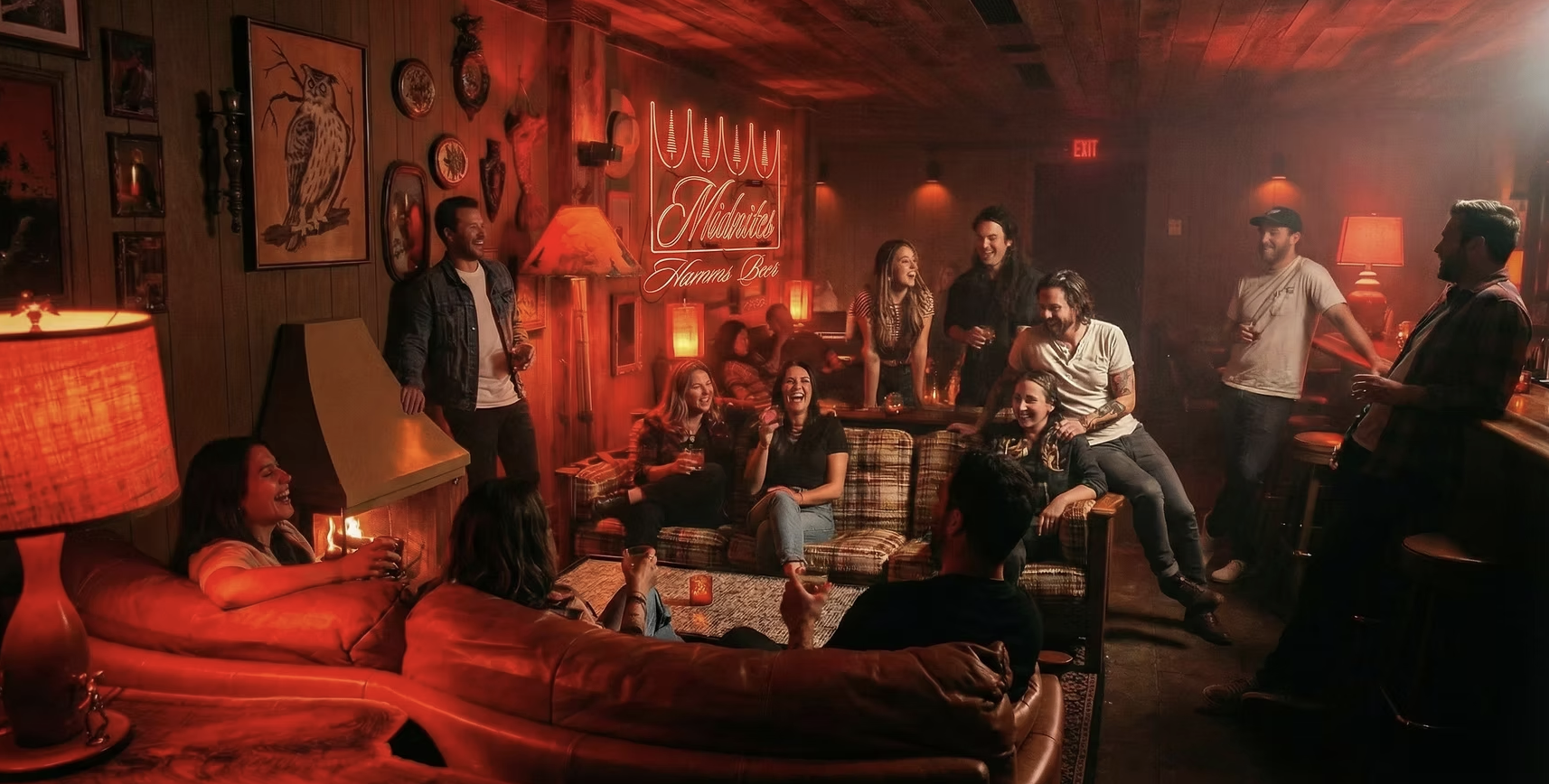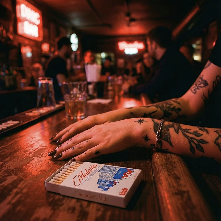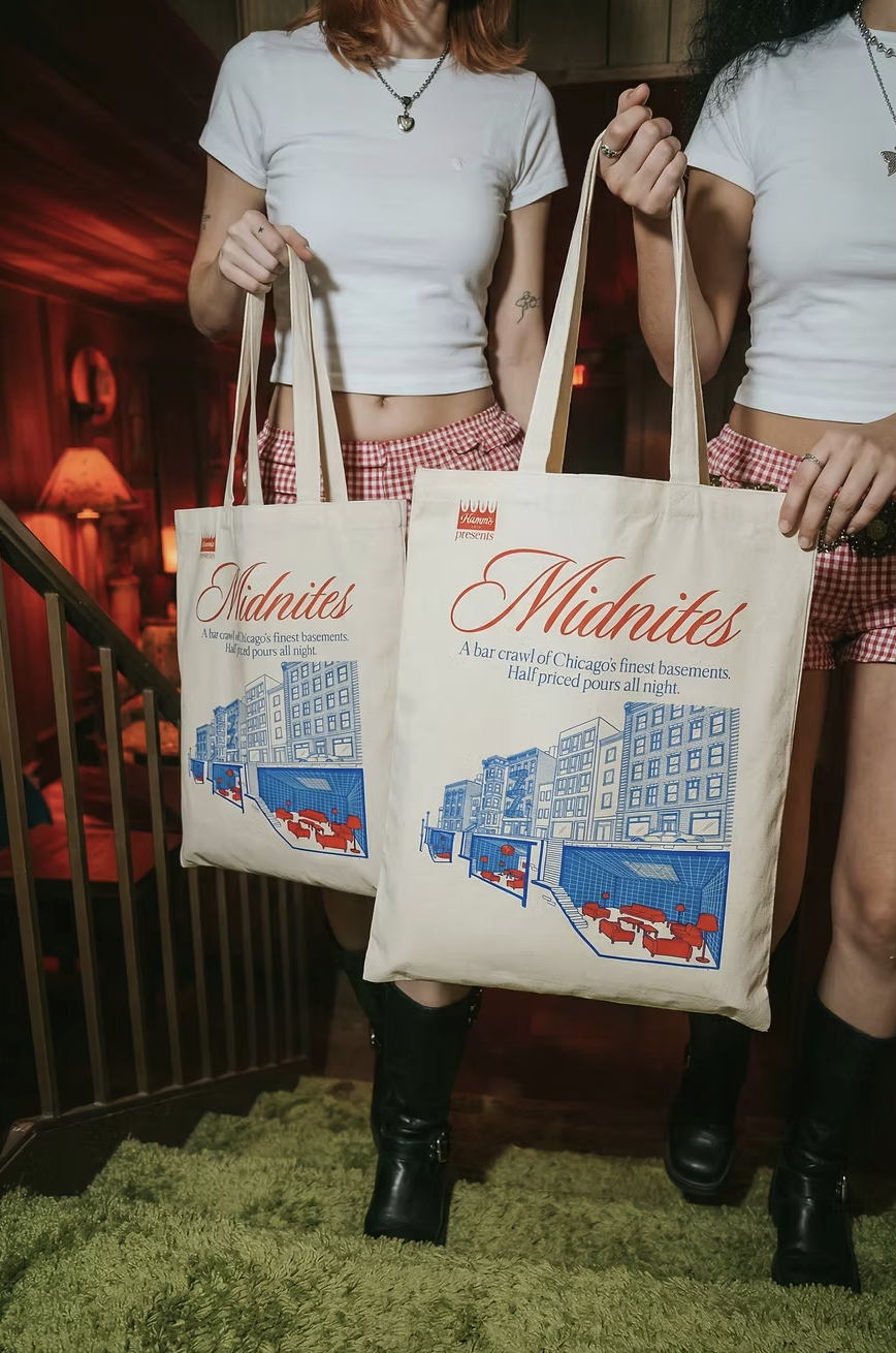 Midwestern basements, turned into bars. Shag rugs, old couches, half-priced Hamm’s, and bartenders in Comfortably Mid merch. Nothing fancy. That’s the point. And did we mention, there’s swag? Oh yeah! Glasses, matchbooks, coasters, and tote bags for the memories…and the gram.