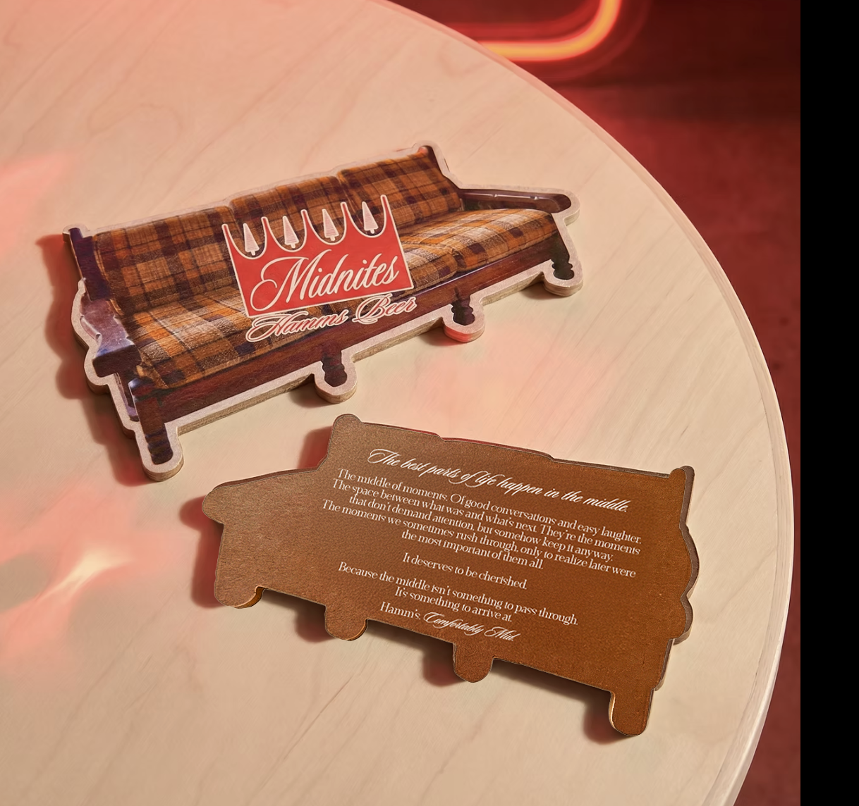 Grandpa’s basement in the middle of the grocery store? You betcha! Hamm’s is setting up an in-store ode to the middle. Featuring refrigerator glass clings and a midcentury couch for a mid-shopping break.