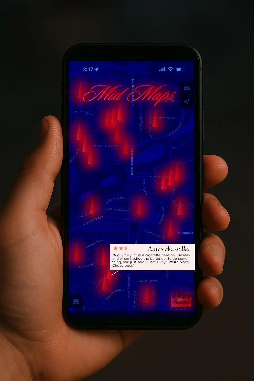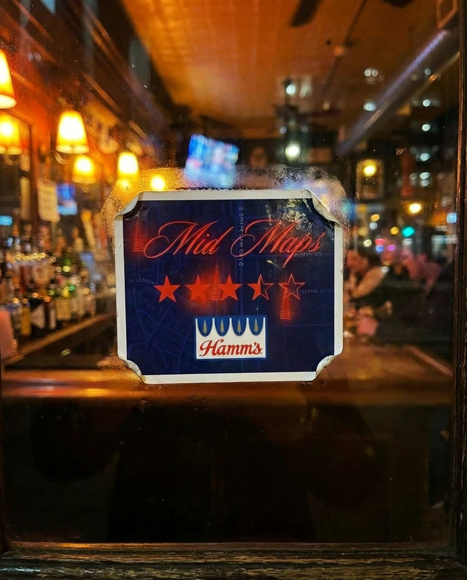 The Hamm’s MidMaps App points you to bars and restaurants that serve Hamm’s, but only the ones that fall comfortably in the middle: three and a half stars or less.